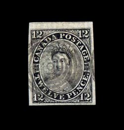 460 O 3 image#3, 1851 12c Black, a magnificent used example of this great classic rarity, being in a condition that only a tiny number of the known examples can boast, featuring four large margins including a portion of the adjoining stamp at top, strong color and a crisp detailed impression, light target cancel, extremely fine; one of the finest used examples in existence; 1999 PF certificate; ex-Caspary (Unitrade C$100,000.00). (Image) 50,000.00