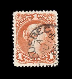 506 O 22a image#22a, 1868 1c Brown red, watermarked paper, gem used example, extraordinarily well centered within enormously large margins which are almost never found on the watermarked varieties, fresh color and paper, neat c.d.s. cancel, extremely fine (Unitrade C$600.00). (Image) 150.00