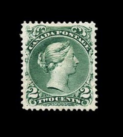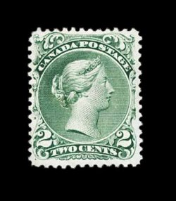 511 og 24b image#24b, 1868 2c Deep green on thin paper, extraordinarily well centered within large margins, deep intense color and impression on fresh white paper, full clean o.g., extremely fine and most attractive (Unitrade C$1,500.00). (Image) 625.00