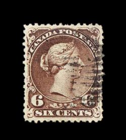 513 O 27b image#27b, 1868 6c Dark brown, watermarked paper, used, outstanding centering, rich luxuriant color and a sharp impression on fresh white paper, lightly cancelled, few nibbed choice very fine; a scarce variety, especially this well centered; clear 1997 Greene Foundation certificate; ex-Redford (Unitrade C$2,500.00). (Image) 1,000.00