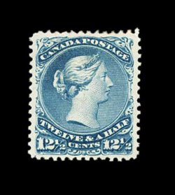 516 og 28b image#28b, 1868 12 1/2c Deep blue on thin paper, very well centered, deep intense color and a strong impression, slightly disturbed o.g., h.r., very fine (Unitrade C$1,800.00). (Image) 875.00
