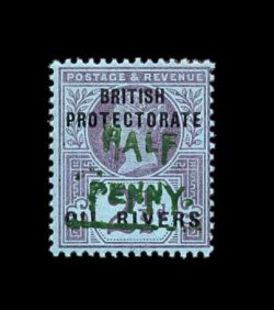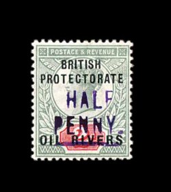 791 og S.G. #11 imageS.G. #11, 1893 1/2p on 2 1/2p Purple on blue, Ty. 4 surcharge in green, an unusually fresh and well centered single, deep strong colors, o.g., only a trace of hinging, choice very fine; 2000 BPA certificate (Scott #25; $250.00). (Image) £250