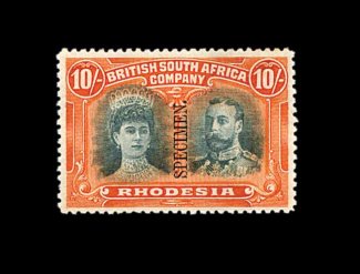 799 S S.G. 119s-85s imageS.G. #119s-85s, 1910 1/2p-£1 Double Heads, with "Specimen" ovpt. cplt. set of eighteen values, an unusually fresh and choice set, as most are typically found toned or with faults, bright fresh colors, great majority are well centered, fresh clean o.g., some small h.r.'s, 1p value with just a hint of perf. toning, otherwise a very fine and handsome set of these rare specimens (Scott #101S-18S). (image 799a) (Image) £3,250