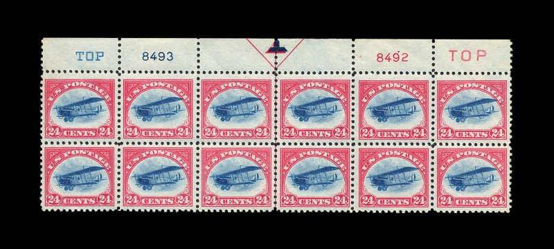 blue, top margin arrow and plate nos. 8493, 8492 block of twelve, well