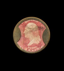 1082 EP45 image#EP45, 3c Burnett's Cocoaine Kalliston, encased postage, usual circulation wear, full intact mica, stamp with slight toning, otherwise very fine. (Image) 325.00