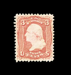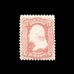1094 og 88 image#88, 3c Rose, "E" grill, a gem mint example of this surprisingly difficult and undercataloged stamp, essentially perfect centering within large margins, rich luxuriant color and impression on crisp paper, especially clean full o.g. that has been very lightly hinged, extremely fine; a truly rare and highly desirable stamp in this stellar quality; 2003 PF certificate. (Image) 900.00
