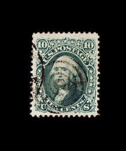 1098 O 96 image#96, 10c Yellow green, "F" grill, well centered within uncommonly large margins, rich color, light target and c.d.s. cancels, choice very fine; 2000 PF certificate. (Image) 210.00