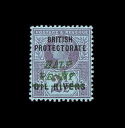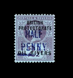 2182 og 24 image#24, 1893 "Half/Penny." Blue surcharge on 2 1/2p, fresh, o.g., lightly hinged, very fine; signed Rendon (S.G. #14; £325). (Image) 325.00