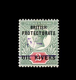 2183 og 28 image#28, 1893 "Half/Penny" Green surcharge on 2 1/2p, well centered, strong fresh colors, o.g., very fine; 1990 BPA certificate (S.G. #35; £400). (Image) 325.00