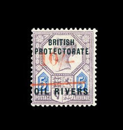 2192 og 27b image#27b, 1893 "2 1/2d" surcharge on 6p Blue, double impression of the basic stamp, two easily discernible impressions, the second (lighter) slightly below the first, lovely fresh color, centered to the top as are all known examples full o.g., small h.r., fine; an extremely rare variety, as only twelve examples were printed (S.G. #40b; £7,500). (Image) 6,250.00