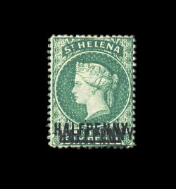 2193 og 33b image#33b, 1884 "Halfpenny" surcharge on 6p Green, double surcharge, strong rich color, o.g., h.r., fine; a very scarce error; 1991 BPA certificate (S.G. #34b; £1,200). (Image) 1,200.00