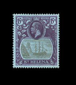 2194 og 94 image#94, 1922 15/- Violet and black on blue Badge of the Colony, well centered, deep intense colors, o.g., lightly hinged, a very fine example of this popular high value (S.G. #113; £800). (Image) 925.00