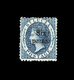 2198 og 26 image#26, 1885 "Six Pence" Surcharge on (4p) Slate blue, deep luxuriant color and a razor-sharp impression, large part o.g., h.r., fine; a scarce stamp that was prepared for use but never issued; 1960 RPS certificate (S.G. #10; £1,000). (Image) 1,600.00