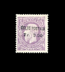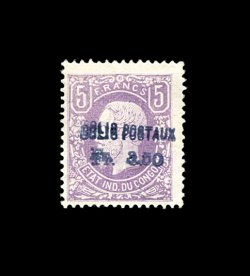2328 og Q1 var. image#Q1 var., 1887 3.50Fr on 5Fr Parcel post, double surcharge, two distinct overprints, bright fresh color and paper, o.g., very fine; a rare variety; signed Rendon and others; cataloged as the normal overprint (Michel #P1 var.). (Image) 1,000.00+