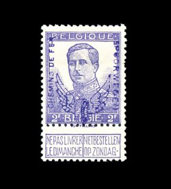2335 og Q60 image#Q60, 1915 5Fr Plum railway stamp, exceedingly fresh, with bright vibrant color, well centered, o.g., lightly hinged, extremely fine; a highly desirable example of this very rare high value; signed Champion and others (Michel #E57; €4,000). (Image) 3,500.00