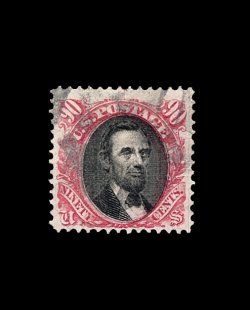 1131 O 122 image#122, 90c Carmine and black, a gorgeous used example of this rare and popular high value, being in a condition that is far superior to most known copies, incredibly well centered within large margins, but just as impressive and striking are stamp's intensely rich colors and impressions on bright paper, very lightly and unobtrusively cancelled, extremely fine; an eye-arresting used gem for the finest collection; 2003 PF certificate. (Image) 2,350.00