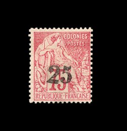 2447 og 10 image#10, 1888 "25" Surcharge on 75c Carmine on rose, fresh color, part o.g., fine; a rare stamp; signed A. Brun and Rendon (Yvert #10; FF 20,000). (Image) 2,100.00