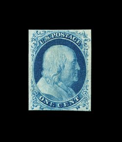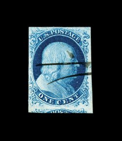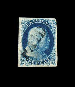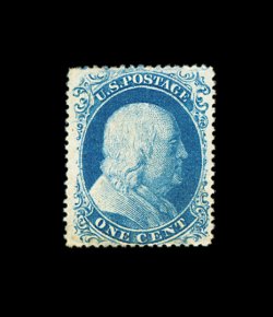 11 og 7 image#7, 1c Blue, Ty. II, an especially choice mint example of this surprisingly difficult stamp to find in premium quality, featuring four very large and incredibly well balanced margins, deep luxuriant color and impression, part o.g., small natural wrinkle (not mentioned on certificate), otherwise extremely fine and quite handsome; clear 1982 PF certificate. (Image) 1,200.00