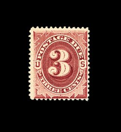 190 og J54a image#J54a, 3c Dull rose, attractive mint single, with bright color of the lighter of the two colors in which this stamp comes, o.g., lightly hinged; nearly very fine and a difficult value; 1998 PF certificate. (Image) 950.00