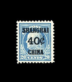 192 nh K13 image#K13, 40c on 20c Deep ultramarine, exceptionally well centered single within large to huge margins, strong intense color with an excellent impression for this ultramarine color, o.g., n.h, extremely fine. (Image) 275.00