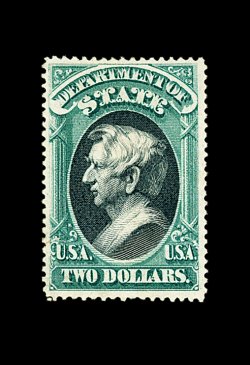 193 ng O68 image#O68, $2.00 State, impressive appearing unused single, marvelously well centered within extra-large margins that are quite uncharacteristic of these high values, strong colors and sharp impressions on fresh white paper, tiny edge tear at left which is nothing more than a small crack between two perfs., in all other respects an extremely fine stamp with great eye-appeal; 1987 PF certificate. (Image) 1,000.00