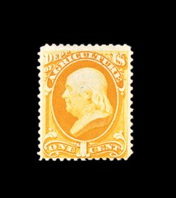 197 og O94 image#O94, 1c Agriculture, on soft porous paper, without gum as issued, quite attractive example of this particularly rare soft paper issue, bright color on fresh paper, small thin spot and a couple of natural minute pinholes, nearly very fine appearance and an elusive stamp in any condition; 1984 PF certificate. (Image) 3,750.00