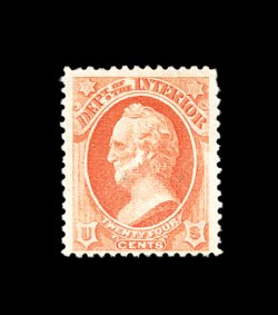 199 og O113 image#O113, 90c Treasury, on soft porous paper, a marvelously well centered mint example of this rare soft paper value, beautifully set within wide even margins, rich and attractive brown color and possessing an unusually sharp impression which this soft paper is not well known for, full o.g., light h.r. extremely fine; a difficult stamp to acquire, particularly in this premium condition; 1975 APS certificate. (Image) 2,400.00
