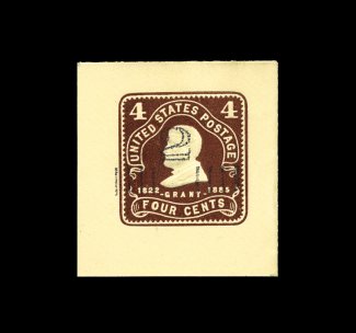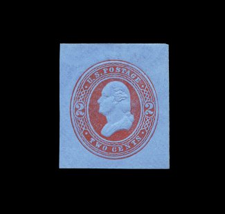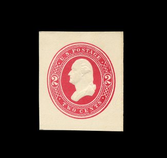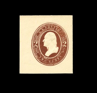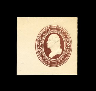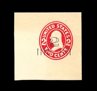 243 og U285 image#U285, 2c Red on white, mint cut square, 34x40mm, especially strong color on bright fresh paper, tiny thin speck at top left outside of indicia (very trivial), otherwise choice very fine; 1999 PSE certificate. (Image) 750.00
