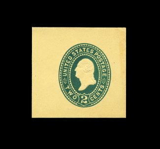 245 og U323 image#U323, 2c Green on amber manila, handsome mint cut square being a full corner, measuring a large 44x43mm, unusually fresh, extremely fine. (Image) 575.00