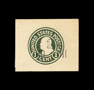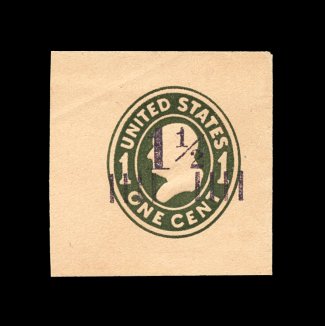 259 og U492a image#U492a, 1 1/2c on 1c Green on oriental buff, die 4, very scarce mint cut square, full corner measuring 43x43mm, light diagonal crease which is little more than a bend, otherwise extremely fine; 2001 PF certificate. (Image) 1,000.00