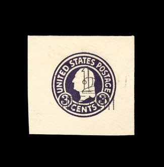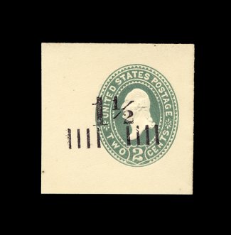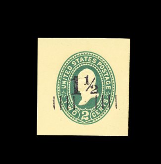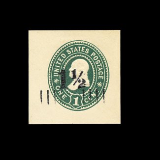 258 og U488 image#U488, 1 1/2c on 1c Green on white, mint cut square, 37x38mm, extremely fine and truly rare; only 39 copies of this were thought to have been issued; 2000 PF certificate; ex-Lyons. (Image) 625.00