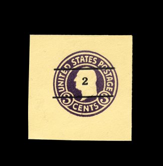 254 og U476 image#U476, "2" on 3c Dark violet on amber, die 1, mint cut square, full corner measuring 42x43mm, well struck example of this typographed surcharge, unlike most of these that were handstamped or done by cancelling machine, extremely fine. (Image) 275.00