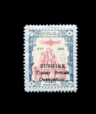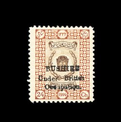 332 og N24 image#N24, 1915 24ch Yellow brown and dark brown, choice mint single of this value, extraordinarily fresh, well centered, o.g., h.r., very fine; only 143 issued; signed Calves and accompanied by a 1965 Iranian Philatelic Society certificate; ex-Gibralter (S.G. #23; £400). (Image) 450.00