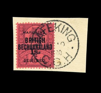 340 O 176 image#176, 1900 "Mafeking/1s./Besieged" on 6p violet on rose, tied to piece by full strike of Mafeking c.d.s., bright and fresh, very fine; signed Champion (S.G. #15; £650). (Image) 650.00