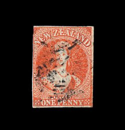 428 O 21 image#21, 1862 1p Vermilion on pelure paper, mostly ample margins all around except just into design at top left, especially bright and fresh color, fine; a rare and seldom offered stamp; 1998 APS certificate (S.G. #81; £1,900). (Image) 2,750.00