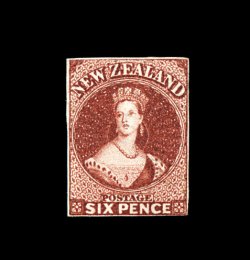 429 ng 29 image#29, 1864 6p Red brown, unused, close margins but clearing all around, deep prooflike color and impression, regummed, fine; a rare stamp in unused condition; 1993 APS certificate (S.G. #99; £3,000). (Image) 3,000.00