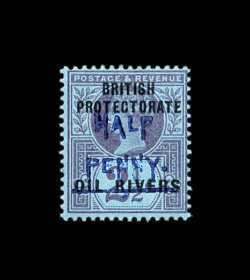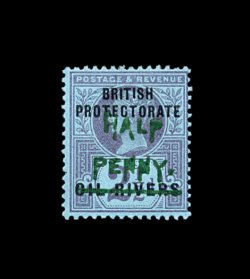 431 og 13 image#13, 1893 "Half Penny" Green surcharge on 2 1/2p, strong colors, o.g., fine; signed H. Bloch (S.G. #27; £375). (Image) 375.00