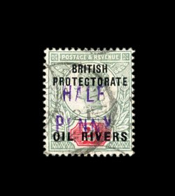 435 O 21 image#21, 1893 "Half Penny" Red surcharge on 2 1/2p, used, well centered, strong color, c.d.s. postmark, very fine; 1996 APS certificate (S.G. #19; £300). (Image) 350.00