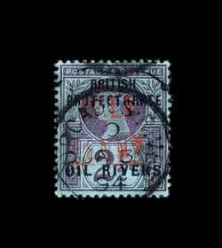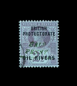434 O 20 image#20, 1893 "Half/Penny." Violet surcharge on 2p, unusually strong color for a used stamp, c.d.s. postmark, fine; 1963 RPS certificate (S.G. #18; £350). (Image) 300.00