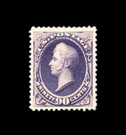 117 og 218 image#218, 90c Purple, extraordinarily well centered within uncharacteristically large margins, incredibly intense color and a razor-sharp impression, full o.g., h.r., extremely fine and quite handsome; 1989 PF certificate; ex-Lessin. (Image) 1,250.00