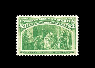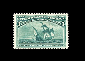 119 og 243 image#243, $3.00 Columbian, choice mint single, exceptionally well centered within large balanced margins, attractive pastel color, o.g., very lightly hinged, very fine and quite handsome; 1999 certificate. (Image) 2,000.00