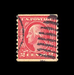 167 O 491 image#491, 2c Carmine coil, Ty. II, perf. 10 vert., well centered used single of this exceptionally scarce coil, strong color in the distinctive carmine shade, portion of duplex pmk., very fine and elusive stamp; 1996 PF certificate. (Image) 750.00