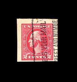 169 O 534B image#534B, 2c Carmine offset imperforate, Ty. VI, an impressively margined used single leaving no doubt that this is the rare imperforate, strong color and clean impression showing the type well, neat portion of slogan cancel, horizontal crease, extremely fine appearance and a rare stamp in any condition; 1997 PF certificate. (Image) 1,250.00
