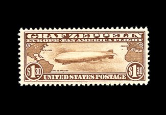 174 nh C14 image#C14, $1.30 Graf Zeppelin, wonderfully well centered mint single within large even margins, fresh bright color, o.g. n.h., extremely fine; 2000 PF certificate. (Image) 700.00