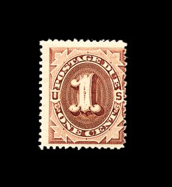 177 nh J8 image#J8, 1c Deep brown special printing, a fresh example of this extremely rare special printing, with strong rich color and prooflike impression, both the hallmarks of the special printings, centered to the right as most known examples are, not only does this stamp have full original gum (which the majority of examples lack), but is never hinged as well (very rare), fine; despite the published issuance numbers, experience has shown that they are very much in error with vast majority of this value sold as special printings believed to have been the normal production printing making this one of the rarest values; 1995 PF certificate. (Image) for hinged 17,500.00