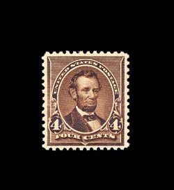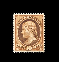 190 nh 222 image#222, 4c Dark brown, incredibly choice mint single, extraordinarily well centered within unusually large margins, deep rich color and impression, o.g., n.h., an extremely fine gem; 2000 PF certificate. (Image) 250.00