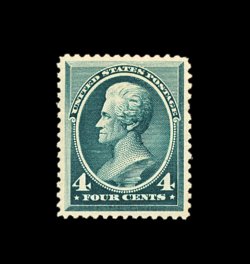 184 nh 211 image#211, 4c Blue green, a remarkable quality mint single, boasting absolutely perfect centering within uncharacteristically large margins, plus this exceptional stamp's color is strikingly intense and its impression well incised, unblemished o.g., n.h., extremely fine; a terribly challenging Bank Note to find in this gem never hinged state of preservation; 2002 PF certificate. (Image) 675.00