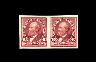 194 nh 224a image#224a, 6c Brown red imperforate, horizontal pair, four large margins, wonderfully fresh color and paper, pristine o.g., n.h., extremely fine and choice. (Image) for hinged 225.00