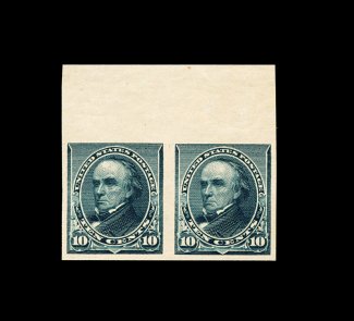197 og 226a image#226a, 10c Green imperforate, gem quality top sheet-margin pair, other margins large and even, deep luxuriant color and a prooflike impression, full clean o.g., faintly hinged in the selvage only, extremely fine; 1985 PF certificate for a block of four, this being the top pair. (Image) 325.00