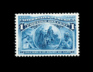 202 nh 230 image#230, 1c Columbian, highly select mint example, outstanding centering within large margins, deep rich color and a crisp impression on immaculate paper, o.g., n.h., an extremely fine gem; 1987 PF certificate. (Image) 45.00